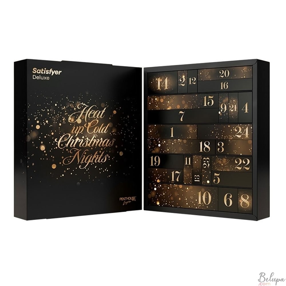 Calendario dell'avvento 2023 del marchio Satisfyer, versione Deluxe. Goditi l'avvento al Natale nel modo più lussurioso e divertente al mondo! 24 sextoys tutti da scoprire, per un valore totale di oltre 600 Euro!!! Nel calendario sono presenti questi toys: stimolatore clitorideo Cutie Heart, ovetto masturbatore SF per uomo, stimolatore vibrante in silicone, vibratore con punta piatta, body sexy, sculacciatore SM quadrato, candela da massaggio, gel stimolante a base d'acqua, olio da massaggio, maschera in pizzo, gioco erotico, mini vibratore da dito, fallo anale, anello per pene con spessori, manette in silicone, palline anali in silicone, nastro bondage versione deluxe, guaina per pene, pinze per capezzoli con catenella, piumino per solletico, fallo anale ad onde, lubrificante a base d'acqua con effetto rilassante anale, cockring sferico e spray ritardante. Ehi, però devi resistere a aprirne uno al giorno...riuscirai a non barare? - Ulteriori informazioni