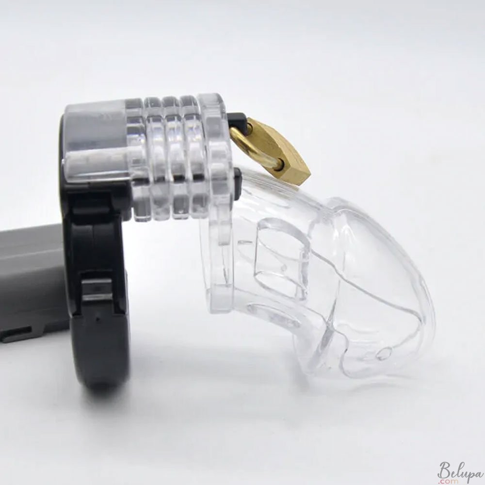 Cintura di castità regolabile per pene ALPHA CAGE in policarbonato trasparente. Grazie al suo materiale leggero ma molto resistente, potrai indossare (o fare indossare...) questa cintura di castità maschile anche durante la routine quotidiana comodamente sotto ai vestiti. Grazie agli spessori in dotazione si può adattare facilmente a qualsiasi pene. Oltre ad un lucchetto in metallo, nella confezione, ci sono 5 lucchetti usa e getta in plastica in modo da poterti consentire di tenere questa cintura anche nelle situazioni più impensabili come in aeroporto o in banca! Indossala facendo in modo di bloccare il pene. Fai solo attenzione a non stringere in modo da evitare problemi di circolazione del sangue. - Ulteriori informazioni