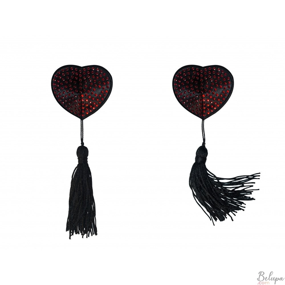 Copricapezzoli Adesivi a Forma di Cuore con Brillanti e Nappine EVANS Rosso e Nero. Questi copri capezzoli hanno un lato interno con uno strato adesivo che ti consentirà di mettere e togliere facilmente questo accessorio. Sono perfetti per giochi in camera da letto con il proprio partner o per attirare l'attenzione su scollature molto profonde. Confezione da 2 pezzi. - Ulteriori informazioni
