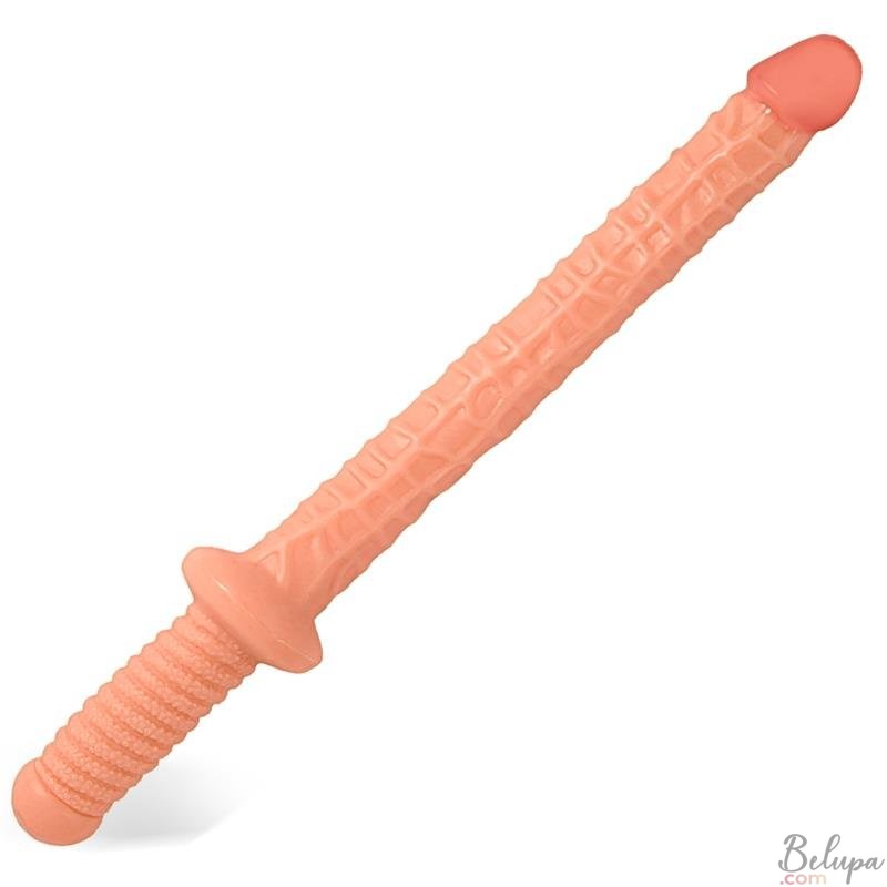 Fallo Doppio realistico BLADE da 47 x 3,5 cm di colore pelle chiara. La forma originale a spada di questo dildo è ideale per giochi sessuali. La superficie è realizzata con materiali morbidi, setosi e molto flessibili. La forma realistica del glande e delle vene renderà l'inserimento oltre che piacevole, molto reale! Impugnatura alla base per agevolare l'utilizzo. Privo di ftalati.