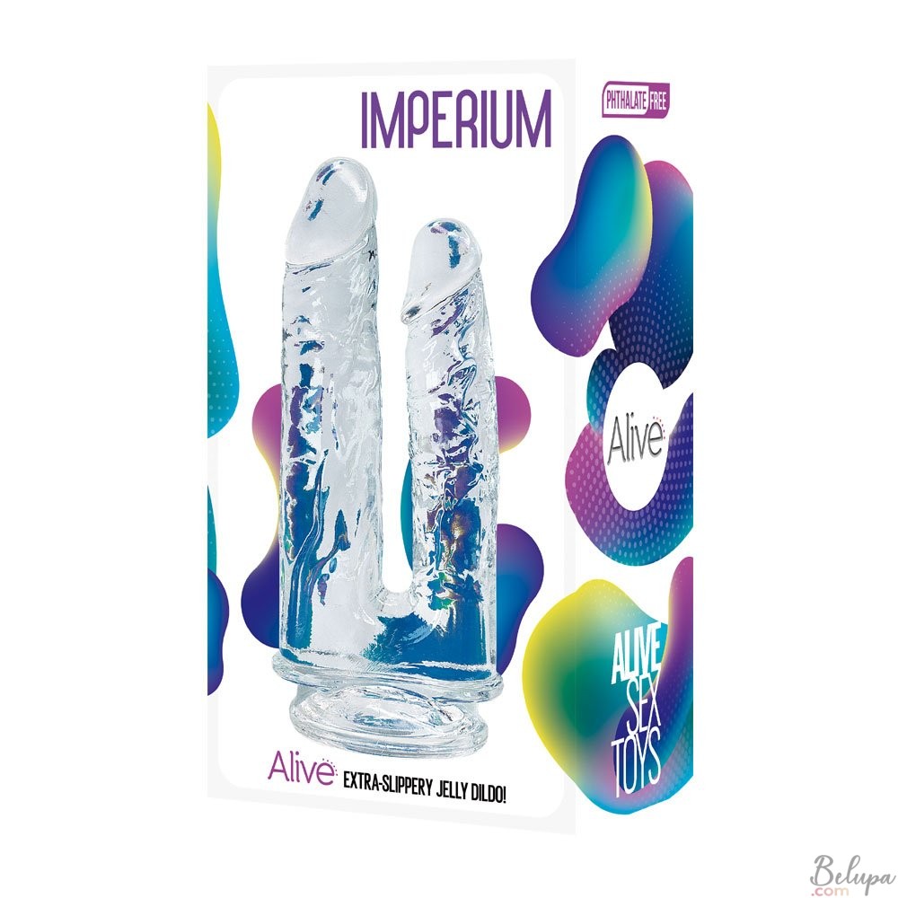 Fallo Doppio realistico IMPERIUM da 19 x 4,3 cm e 17 x 3,3 cm trasparente. Questo doppio fallo ti permette di realizzare i tuoi sogni di doppia penetrazione! Grazie al suo materiale innovativo, questo dildo risulta incredibilmente liscio. La forma realistica del glande e le vene marcate renderanno l'inserimento oltre che piacevole, molto reale! Realizzato in TPE, privo di ftalati. Alla base si trova una ventosa che ti permetterà un massimo godimento a mani libere.
