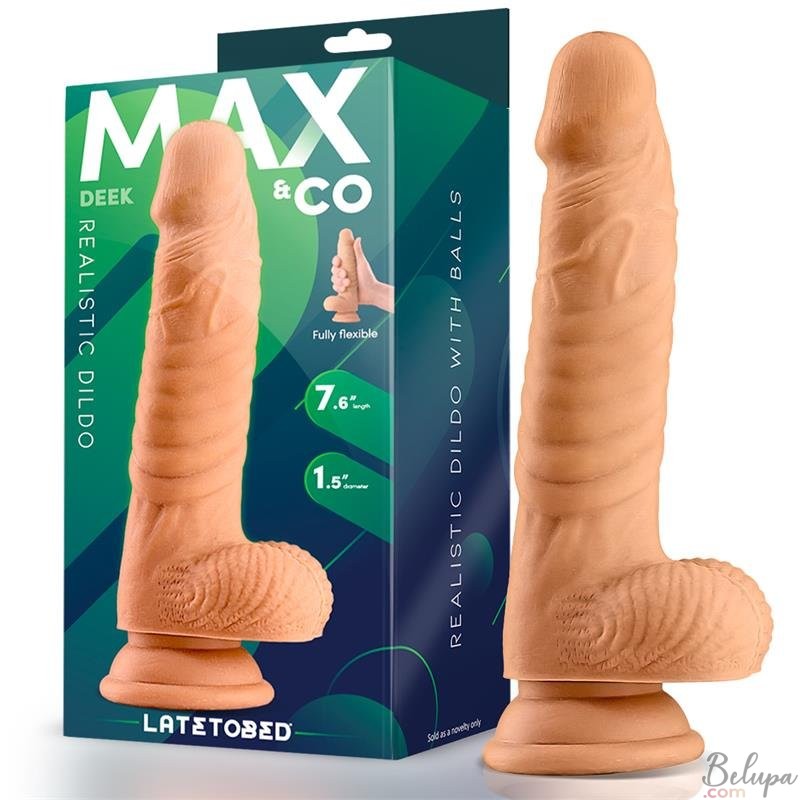 Fallo realistico DEEK da 19 x 3,8 cm di colore pelle chiara. Realizzato con materiali morbidi, setosi e molto flessibili. La forma realistica del glande e dei testicoli renderà l'inserimento oltre che piacevole, molto reale! Alla base si trova una ventosa che ti permetterà un massimo godimento a mani libere. Privo di ftalati.