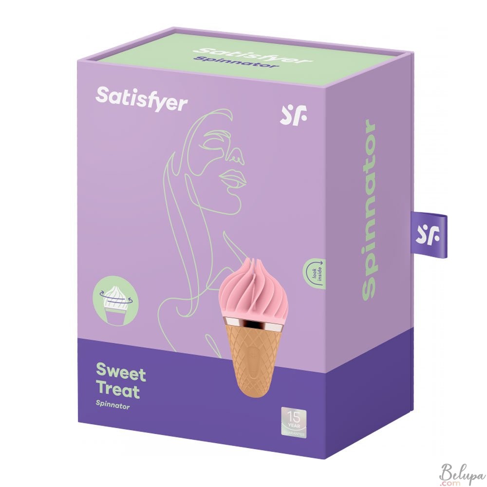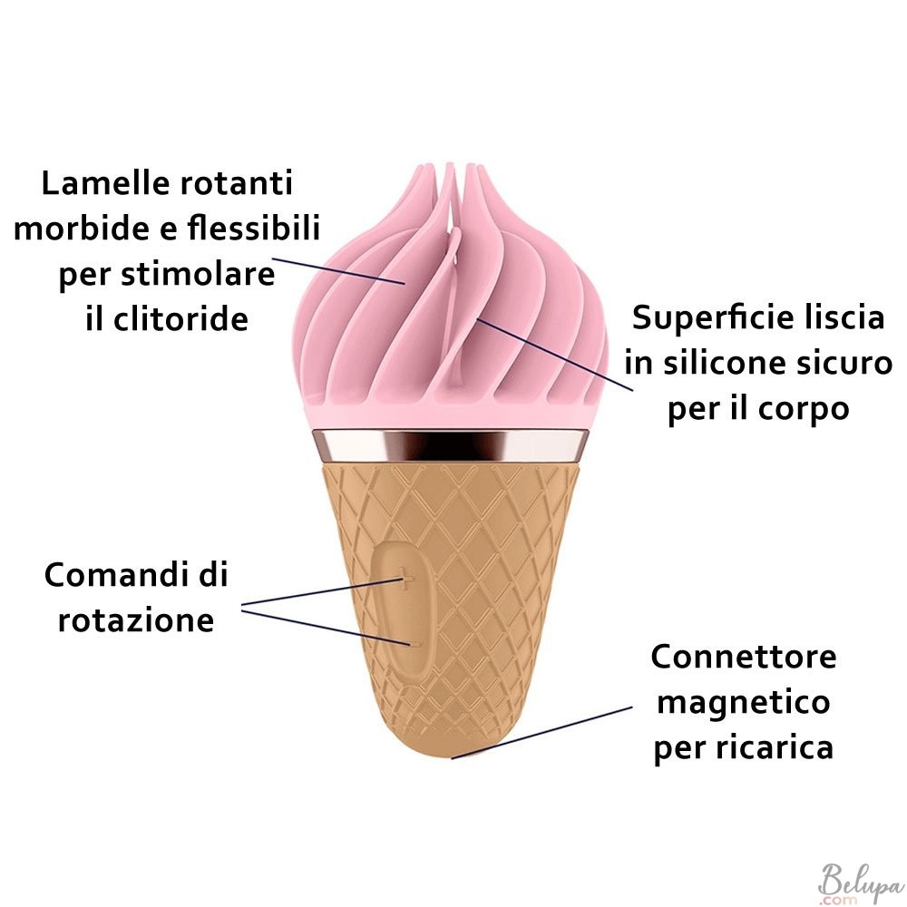 Satisfyer presenta SWEET TREAT rosa. Un dolce cono gelato al sapore di godimento allo stato puro. Nonostante le sue dimensioni ridotte, il gelato di Satisfyer, saprà stimolarti con dolcezza portando il tuo Piacere dritto in orbita! La parte stimolante (quella rosa) è realizzata in silicone super flessibile, sicuro per il corpo e naturalmente privo di ftalati. Il suo motore è in grado di erogare 11 modalità di rotazione, tutte fatte per farti godere. SWEET TREAT è impermeabile di grado IPX7 e significa che può essere usato anche nella vasca da bagno. La sua batteria agli ioni di litio è ricaricabile con cavo USB incluso nella confezione. Questo sextoy gode inoltre della modalità "sussurro" che ti consentirà di utilizzarlo senza fare troppo rumore...certo è che se ti metti ad urlare dal piacere, la modalità sussurro servirà a poco...quindi occhio! :P