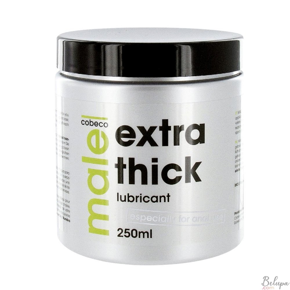 Lubrificante anale base di acqua ad alta densità Male Extra Thick in vasetto da 250 ml. La consistenza di questo lubrificante ad alta densità consente alla pelle di non assorbirlo e resta quindi in superficie creando una scorrevolezza e lubrificazione costante e duratura. Questo lubrificante dona più comfort durante i rapporti rendendoli più intensi ed è indicato in modo particolare per i rapporti anali. Realizzato in Olanda seguendo tutti gli standard qualitativi e di sicurezza europei. - Ulteriori informazioni