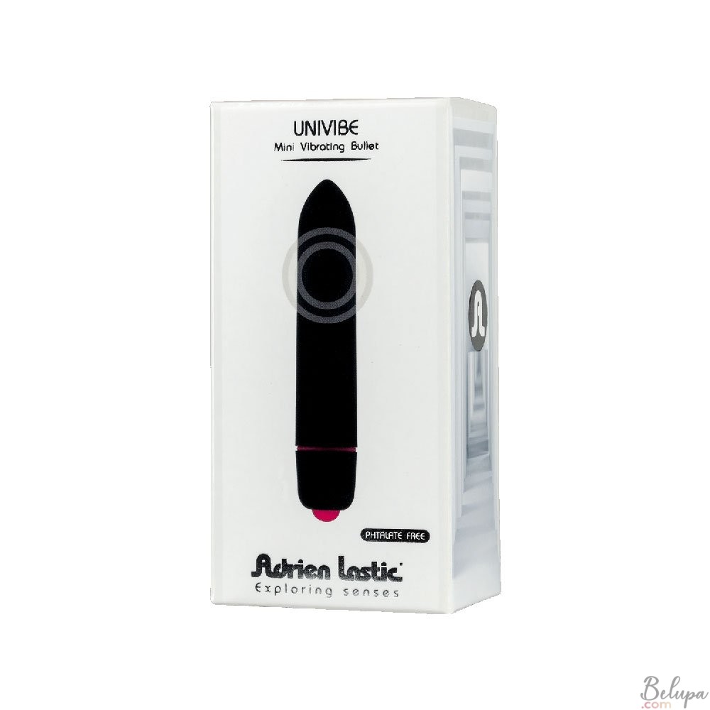 Mini Bullet UNIVIBE di Adrien Lastic da 9 x 1,7 cm nero. Questo bullet (o mini vibratore) ha un tocco setoso ed è in grado di erogare 10 modalità di vibrazione. Le sue dimensioni ridotte ti consentiranno di portarlo sempre con te senza difficoltà: in questo modo sarai sempre pronta a deliziare il tuo clitoride con vibrazioni sontuose e stimolanti. Realizzato con silicone di alta qualità, sicuro per il corpo e privo di ftalati. Funziona con 1 batteria AA NON inclusa nella confezione.