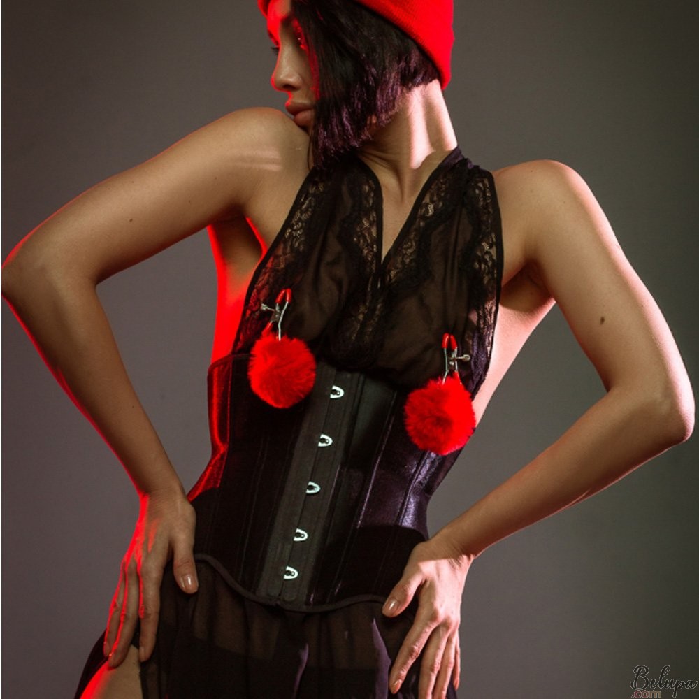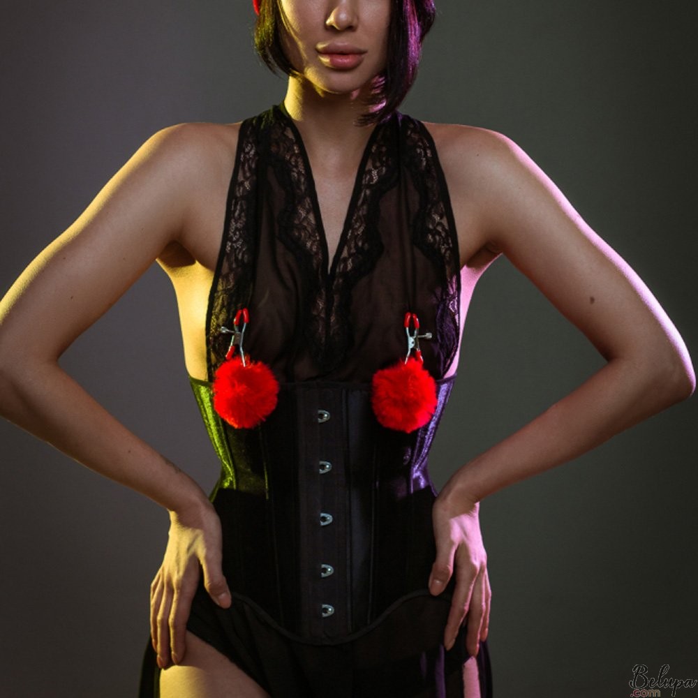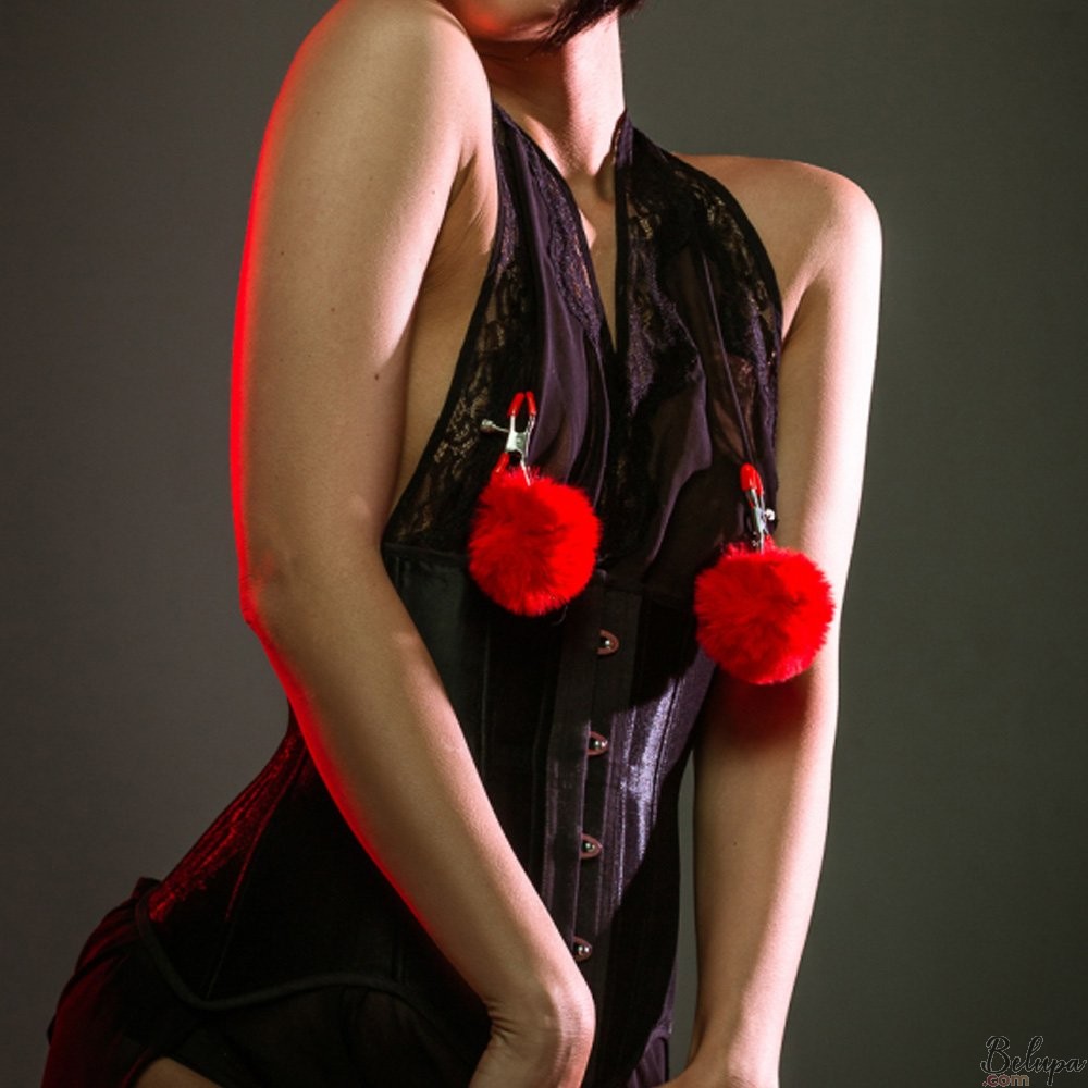 Pinze strizza capezzoli con pompon rosso ANGELIC, stretta regolabile. Gli eleganti morsetti per capezzoli Angelic sono decorate con dei morbidi pompon di colore rosso per donarti un'aria di (finta) tenerezza. Ti daranno una sensazione inaspettatamente piacevole di dolce dolore. La pinza è in metallo con i morsetti ricoperti in silicone. I più esperti, oltre a regolare la forza al della stretta al massimo, potranno rimuovere la copertura e sentire il metallo direttamente sul capezzolo. Uno strumento perfetto per ravvivare il rapporto con il partner e un must-have per le pratiche BDSM, sia per neofiti che per esperti. - Ulteriori informazioni