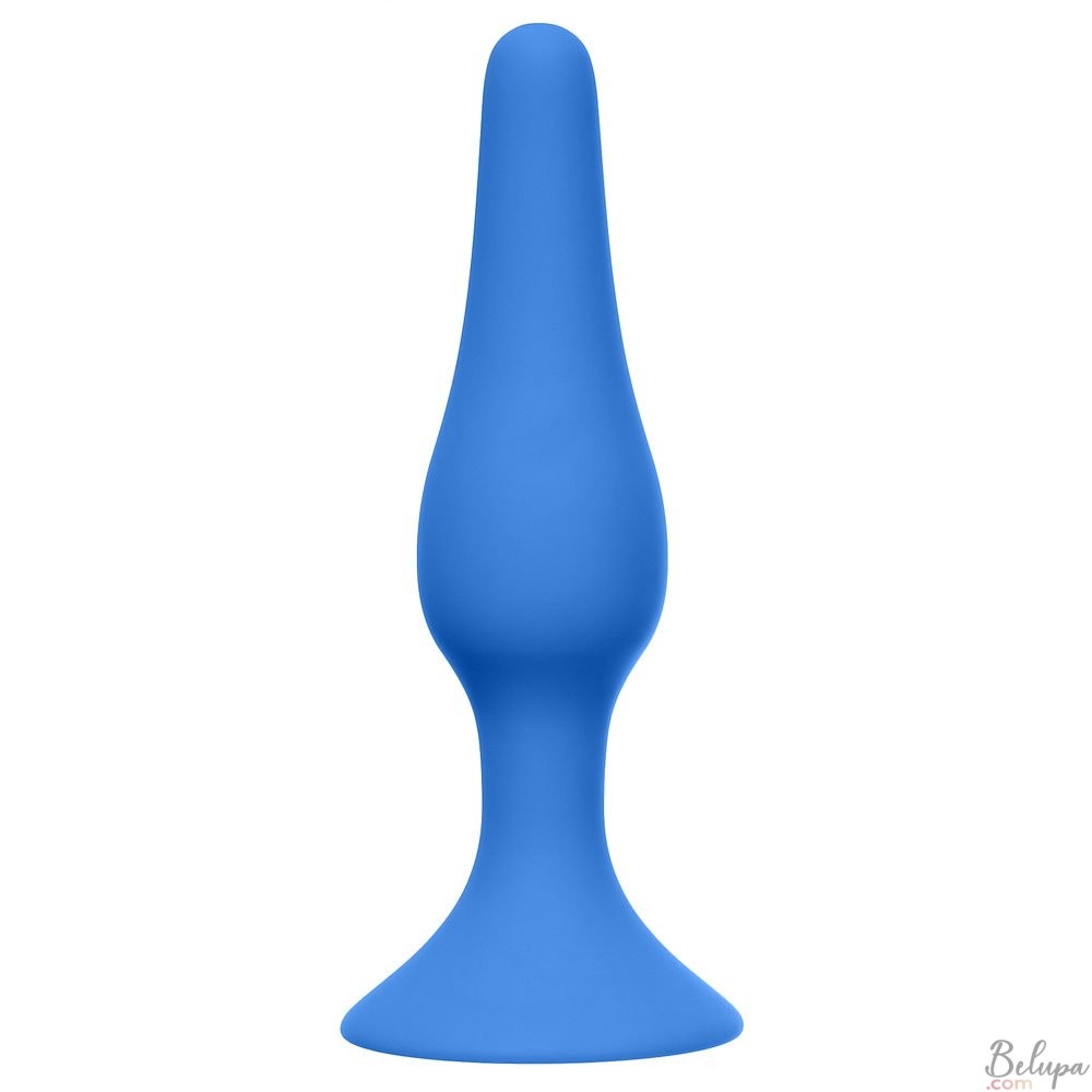 Plug anale SLIM da 10,5 x 2,5 cm di colore blu. Questo sextoy è realizzato in silicone di alta qualità di grado medico, ovviamente privo di ftalati. Questo materiale è uno dei più igienici, duraturi e facili da pulire. Questo plug anale (o cuneo anale) è progettato specificamente per i principianti: la sua punta stretta, infatti, facilita l'ingresso e la base restrittiva a forma di ventosa lo rende sicuro da usare, consentendoti inoltre di fissarlo saldamente alle superfici piane.