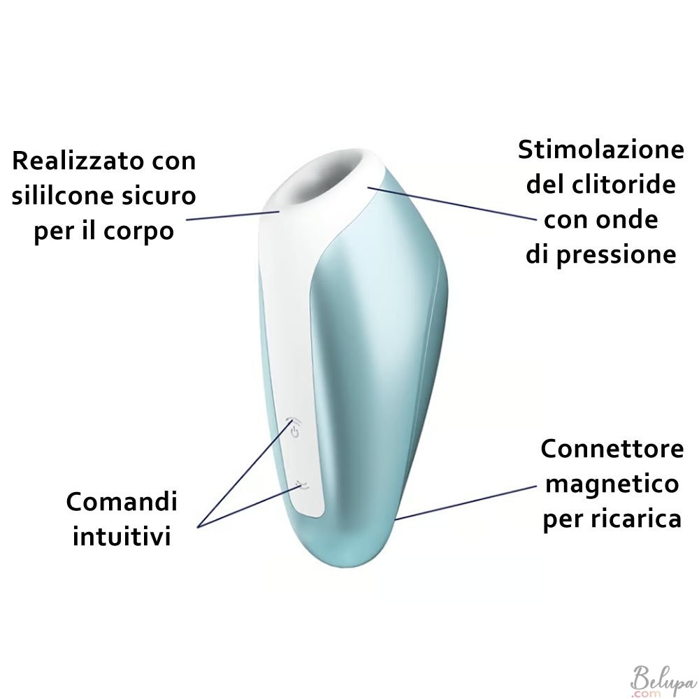 Codice Ean / UPC 4061504003443 Altri / Vecchi codici 144216 Lunghezza 9,8 cm Larghezza 5 cm Funzioni Effetto Risucchio Tipo Utilizzo In Solitario Alimentazione Ricaricabile Impermeabile Impermeabile IPX-7 Materiale Privo di ftalati, Silicone Colore Principale Azzurro Brand Satisfyer - Domande sul Prodotto